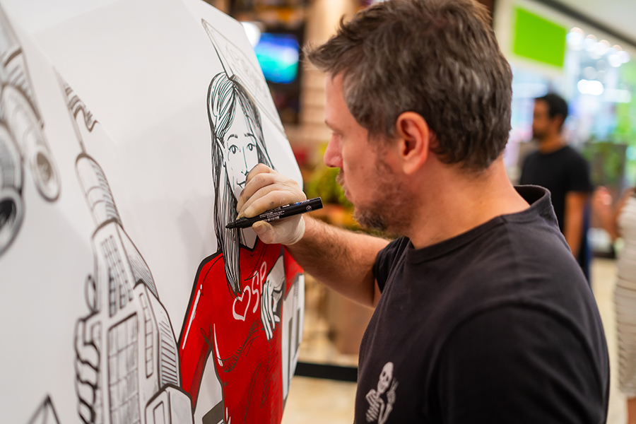 I have works made both in homes and companies and ranges from digital illustrations to drawings made on objects, furniture, doors and walls.