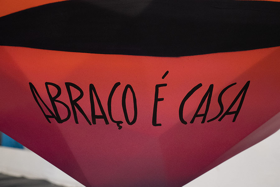 Me inspirei no AMOR e em suas diversas demonstrações. O abraço é uma forma de expressar o amor e, quando recebemos um abraço de alguém por quem temos afeto e confiança, encontramos aconchego. Nomeei a obra 'Seu Abraço é Casa', pois casa representa esse aconchego, e todos tem ou deveriam ter alguém que lhes transmitisse esse sentimento.