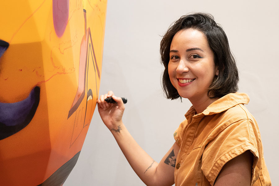 Gim 's Bio': Gislaine Martins, known by her artistic name Gim, is a Brazilian artist, architect, and muralist, born and raised in Minas Gerais. Gim is currently living in Campinas/ SP, where she graduated in Architecture & Urbanism from PUC Campinas and later followed through her post-graduation in the same field.