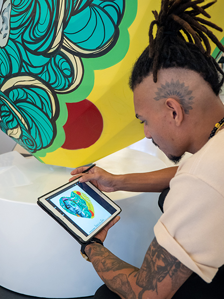 Vinicius 's Bio': Vinicius Zoia, 28, graduated in Architecture and Urbanism. He's been sketching since he was a kid, but became a professional artist only a few years ago, through tattoo art. From 2020 on, he also started painting pictures, murals and customizing clothes.