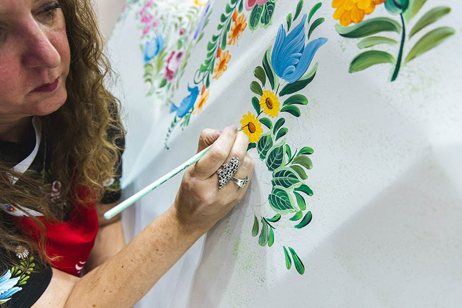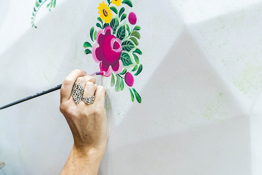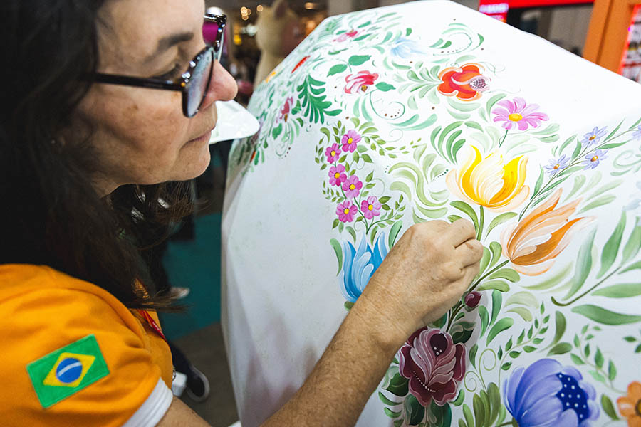 Abraçando o resgate à pintura decorativa, trazemos talentosos artistas que irão explorar a técnica do Bauernmalerei, que é conhecida como pintura Bauer, e sua tradução é “pintura camponesa”. Essa técnica é conhecida por seus motivos florais, folclóricos e cenas do cotidiano.