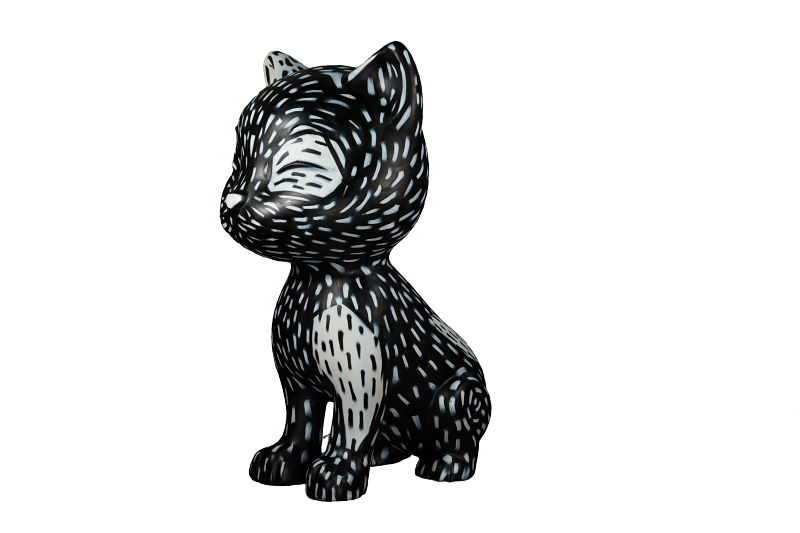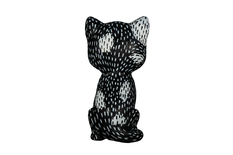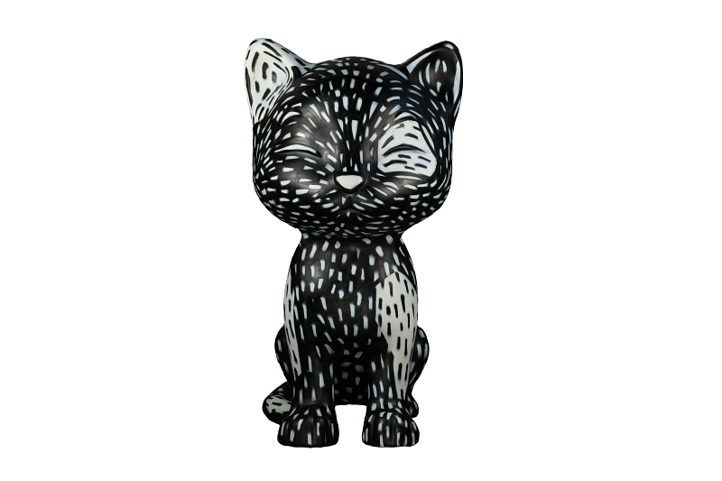 A inspiração foi fazer um gato em estilo de xilogravura, com acabamento em alto contraste (apenas nas cores branca e preta). Essa linguagem também está em diálogo com a expressão de cultura popular de cordel.