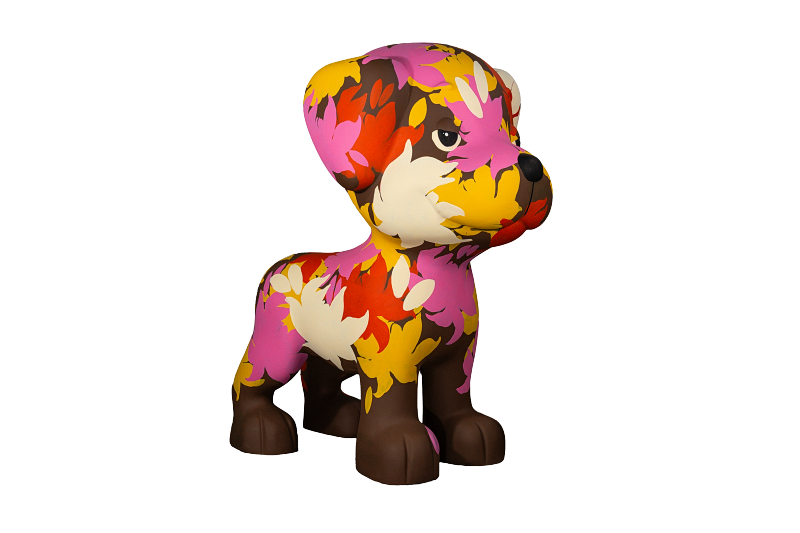 Essa arte foi inspirada na conexão única que temos com nossos pets. O uso de tons e manchas abstratas representam a personalidade marcante e a beleza singular de cada animal.